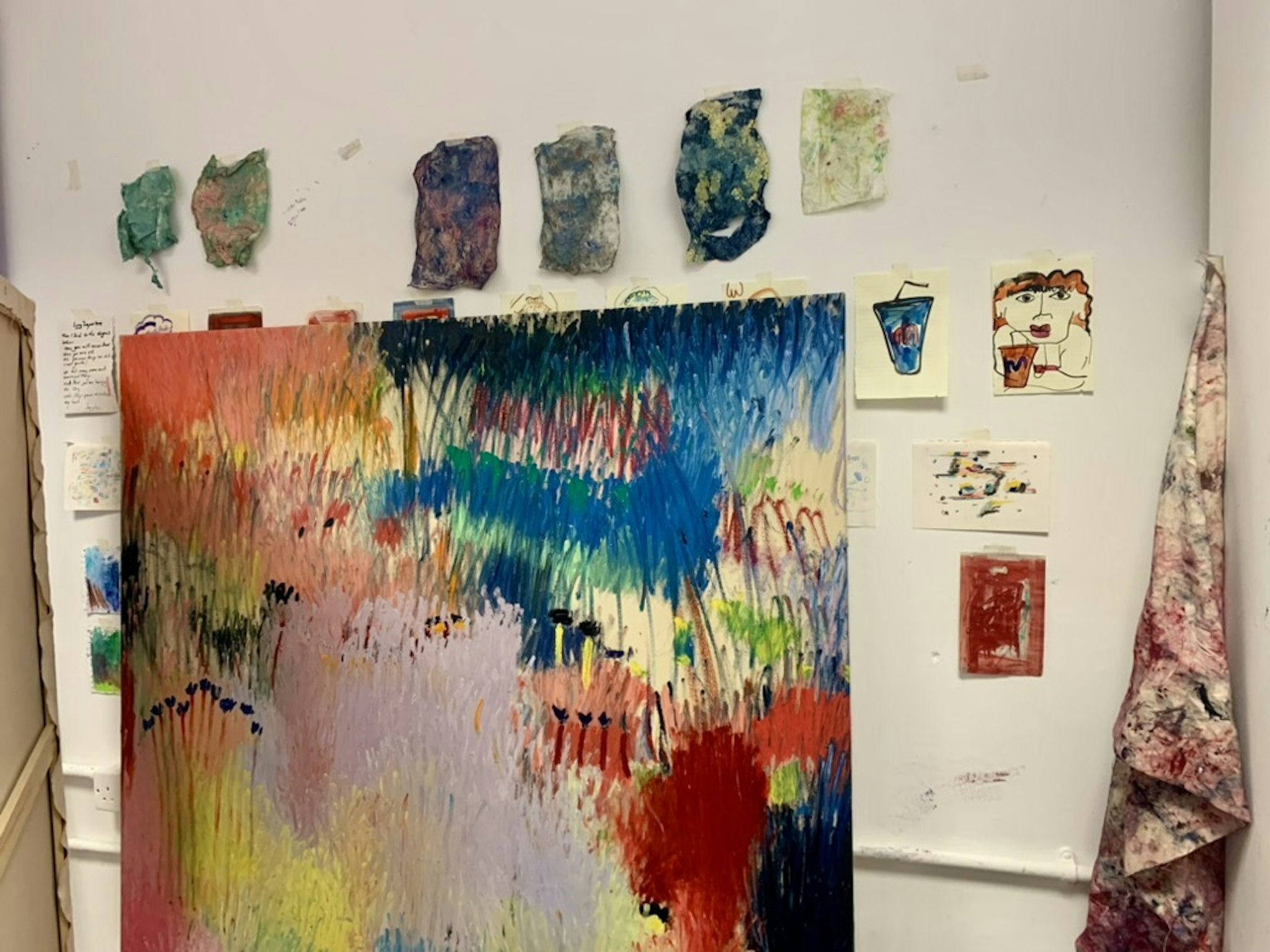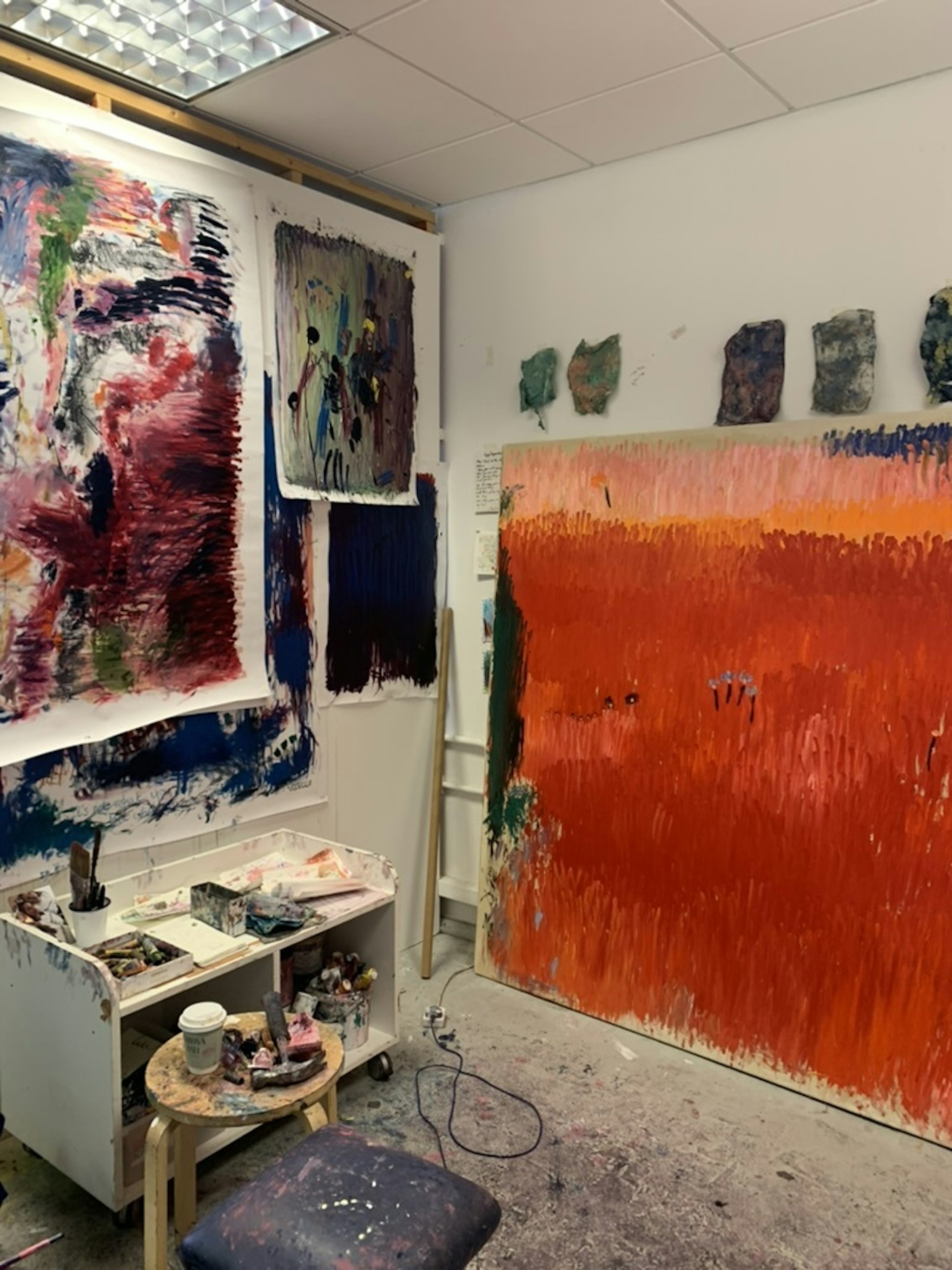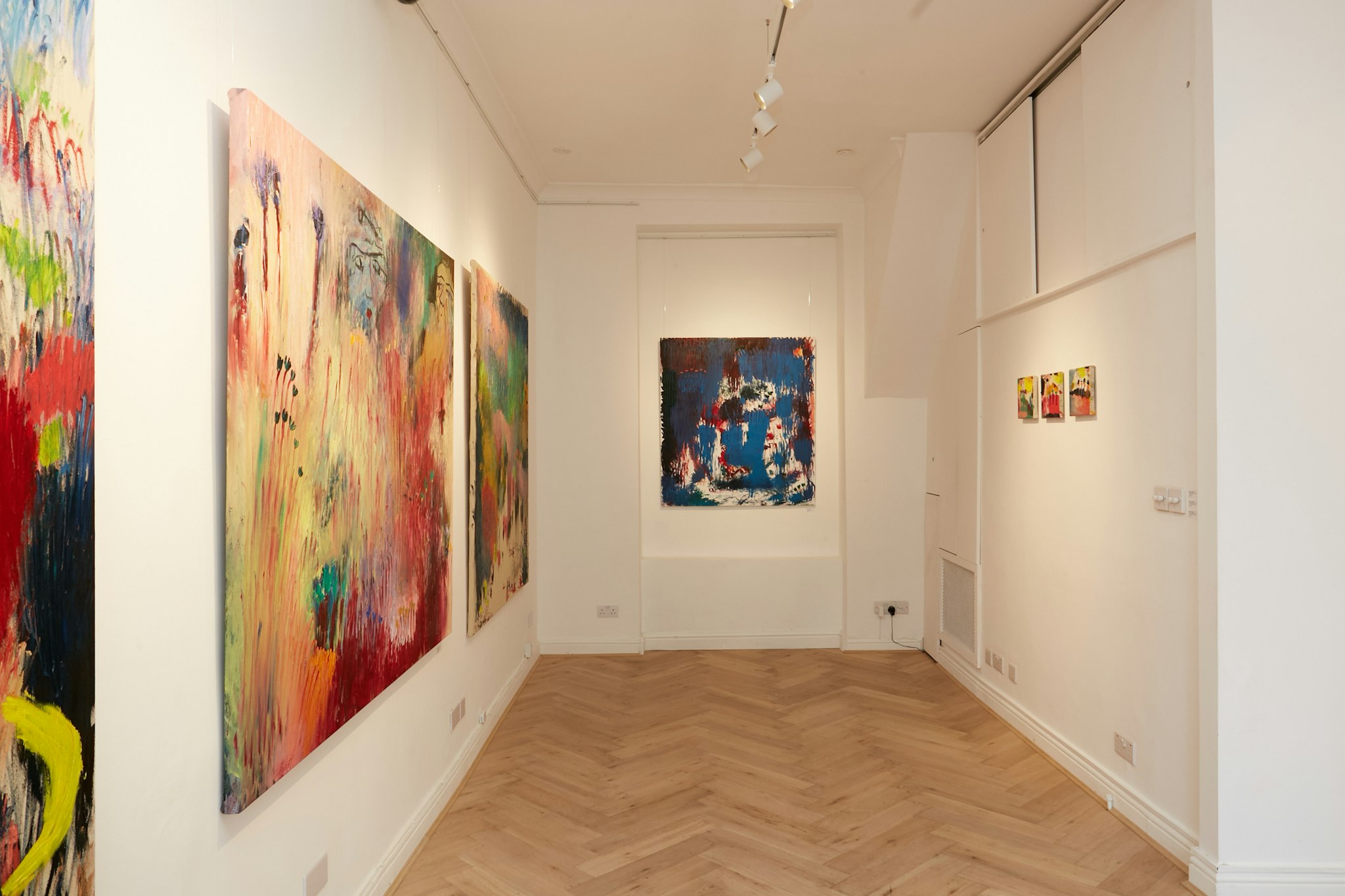These paintings are purely expressions of emotions felt in the time when they were created. There is physicality to the work, which takes over when they are created, and a flow of uncensored mark making.
