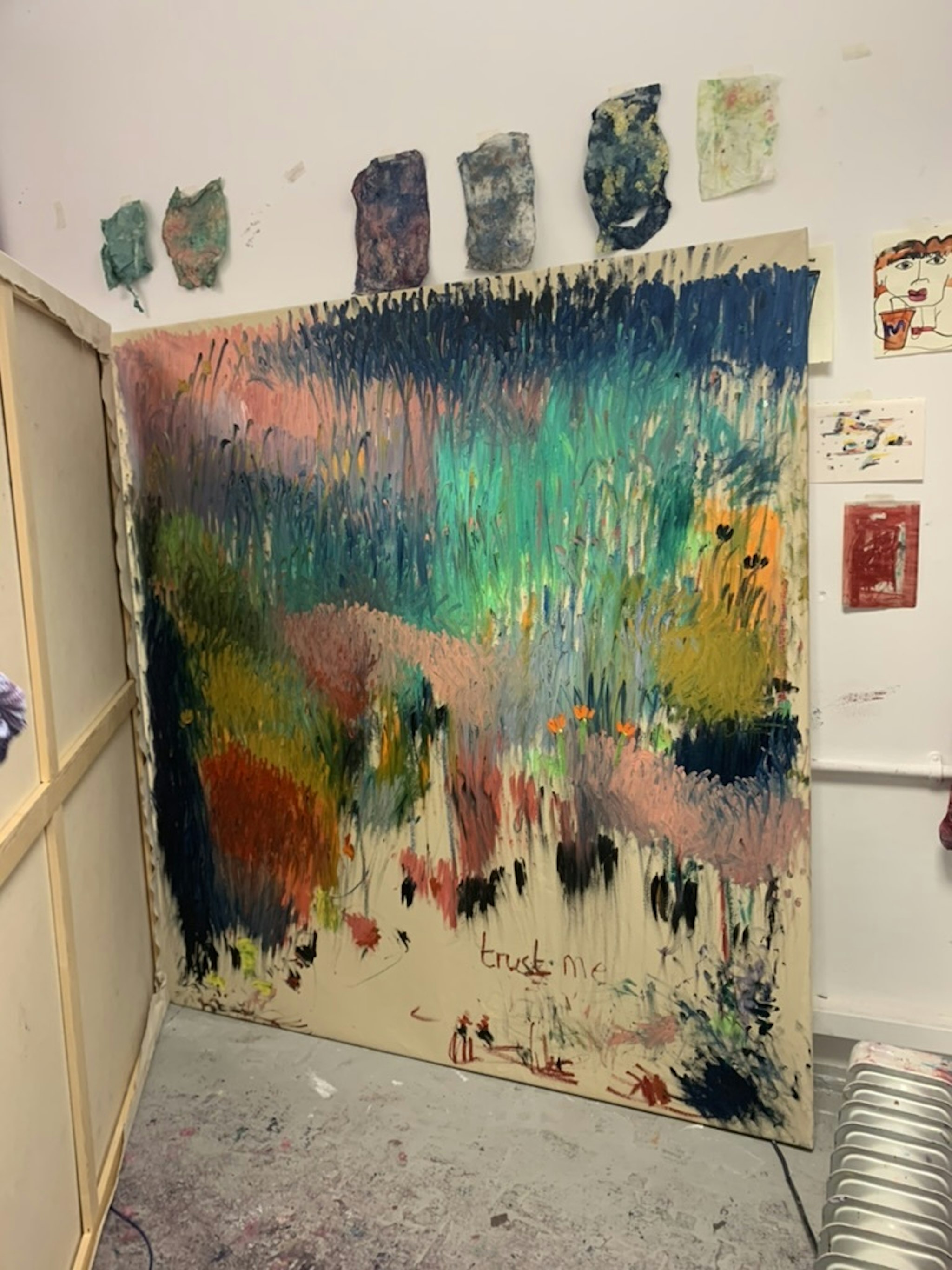 One of the paintings featured includes the title of the show. I created this painting in honour of Piet Oudolf, as reading those words has truly enlightened my practice. Two of the paintings in the show have the words ‘trust me’ and ‘find me’. When writing these words on to the canvas, I was speaking to myself - a reminder that day to day we are constantly trusting ourselves and finding ourselves. Finally there is Venus at feast no.3 - this painting features annotations of spontaneous thoughts in the moment.