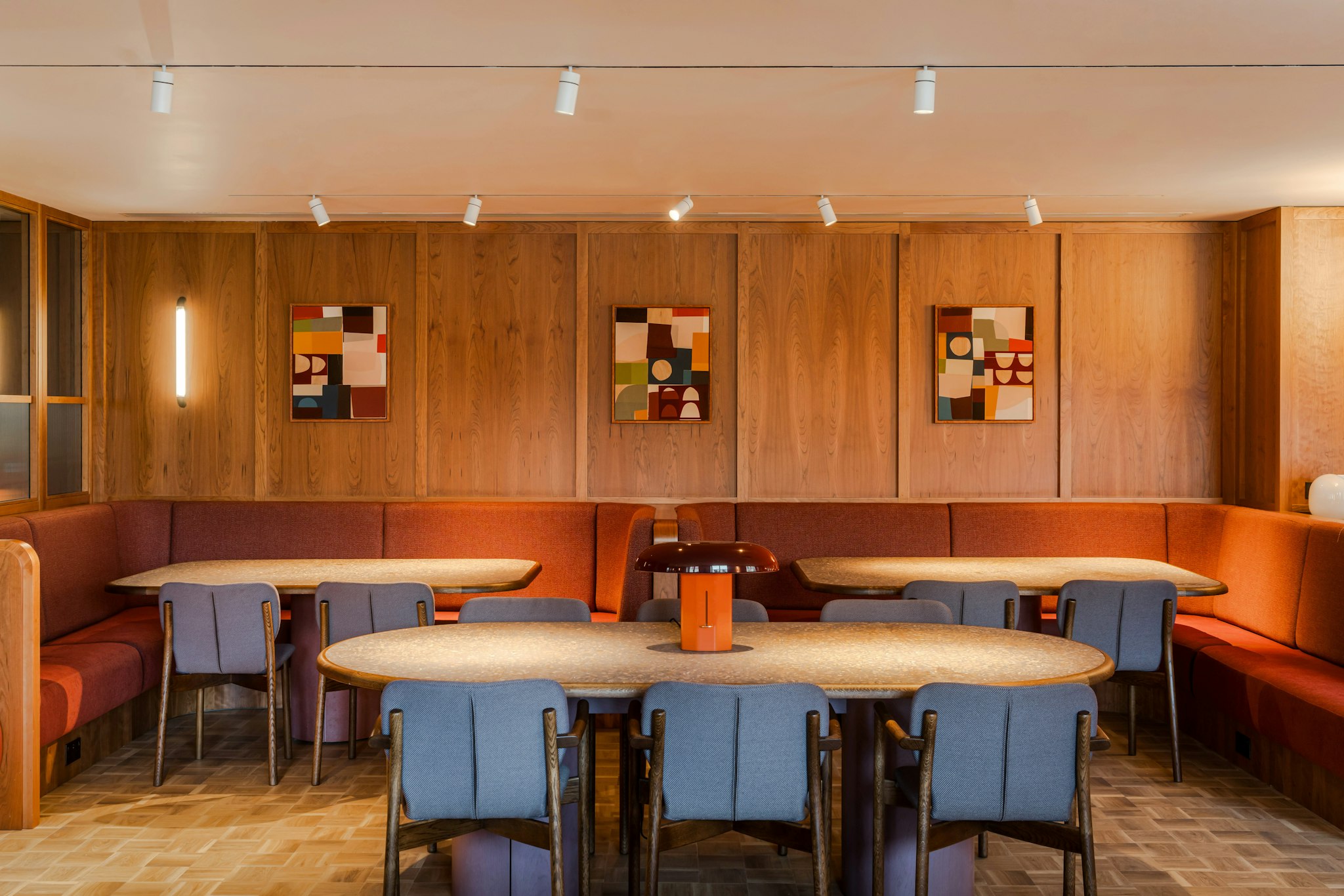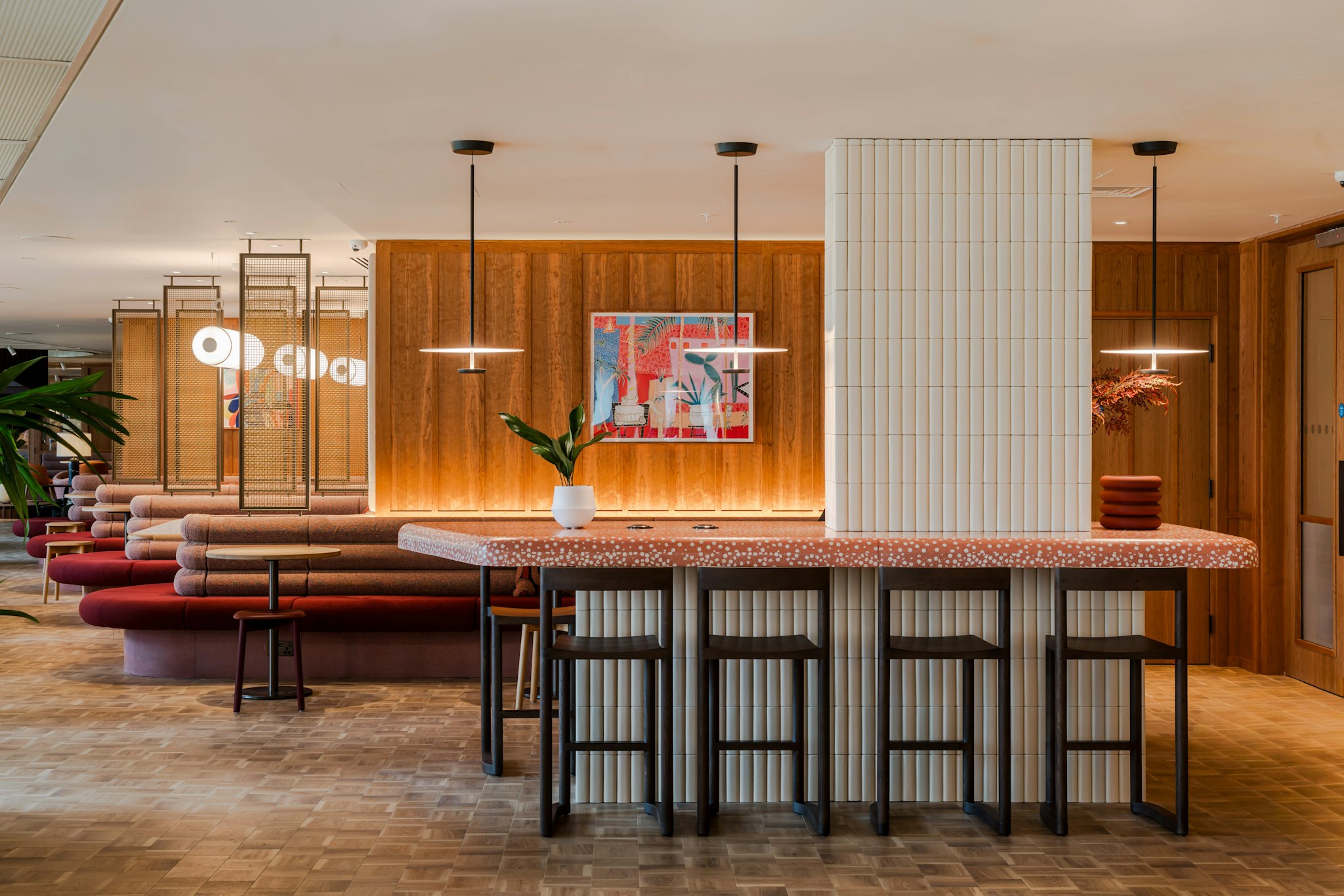 - Playful figurative works by Ed Burkes. These colourful paintings in the club lounge feature multiple figures interacting with each other, creating a lively sense of connection and shared experience.