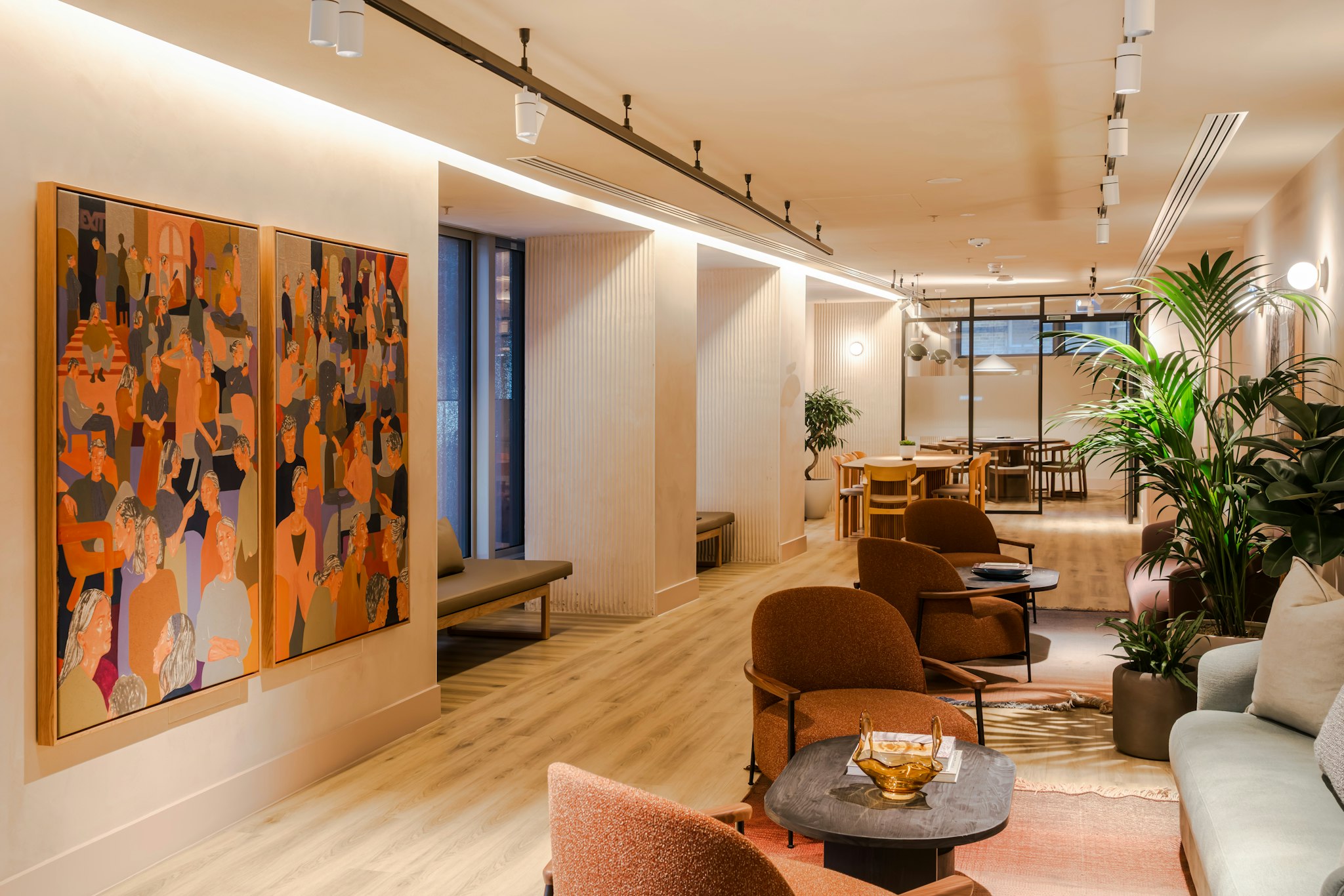 - ‘London City Love Notes’ and ‘London in Autumn’ large scale abstract figurative works by Ben Wakeling on the public ground floor