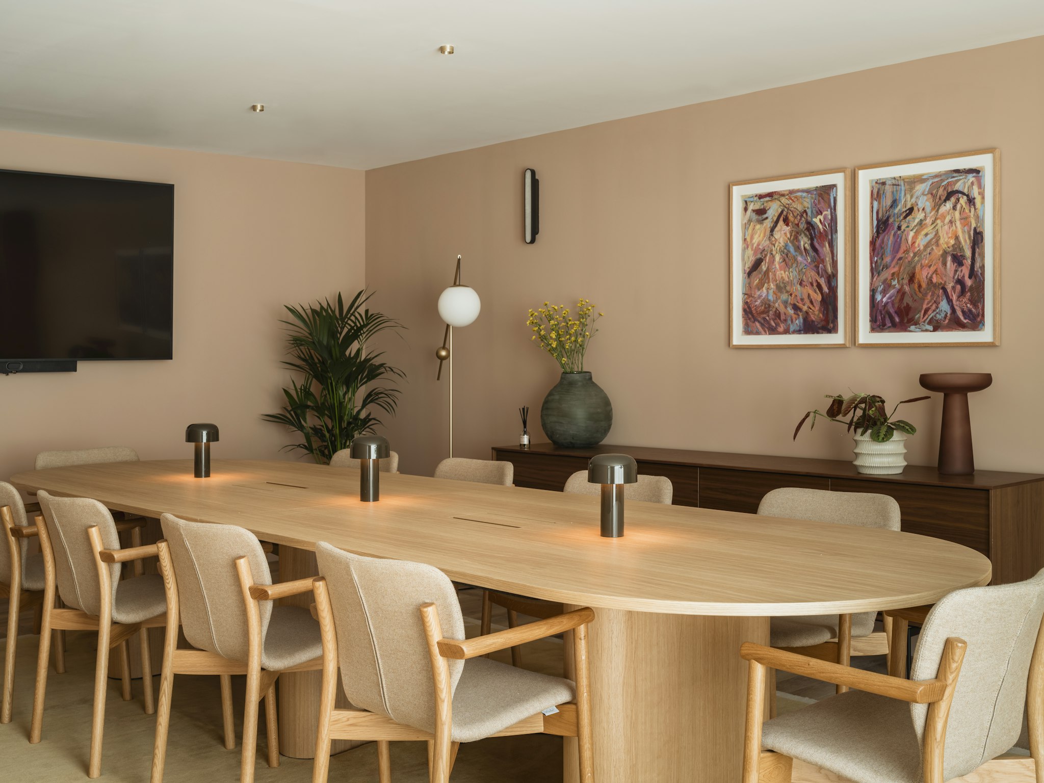 Each artwork was carefully selected to suit its setting. In the entrance and mezzanine, a gallery wall showcases original paintings, prints, and mixed media works, placing art at the heart of the experience. The pieces complement the earthy tones and craftsmanship of the interior design, which reflects the area's rich heritage. Elsewhere, contemplative artworks enhance the meeting rooms, whilst playful pieces bring energy to the games lounge, screening lounge and party suite, creating a social atmosphere for the young professionals and families that call this building home.